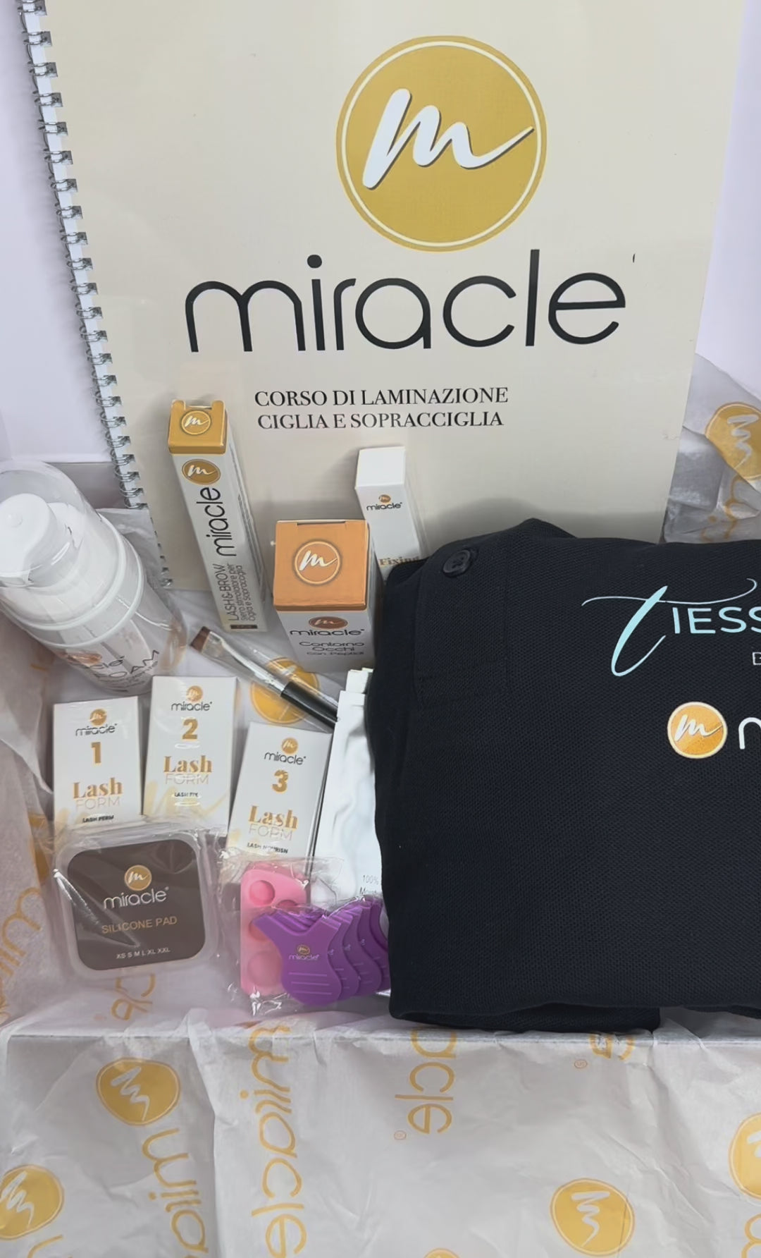 Il kit avanzato comprende inoltre tinta chiara e tinta scura, attivatore per la tinta, polo brandizzata Miracle e attestato di partecipazione per le allieve del corso, completando un percorso professionale che valorizza competenza, immagine e riconoscibilità.